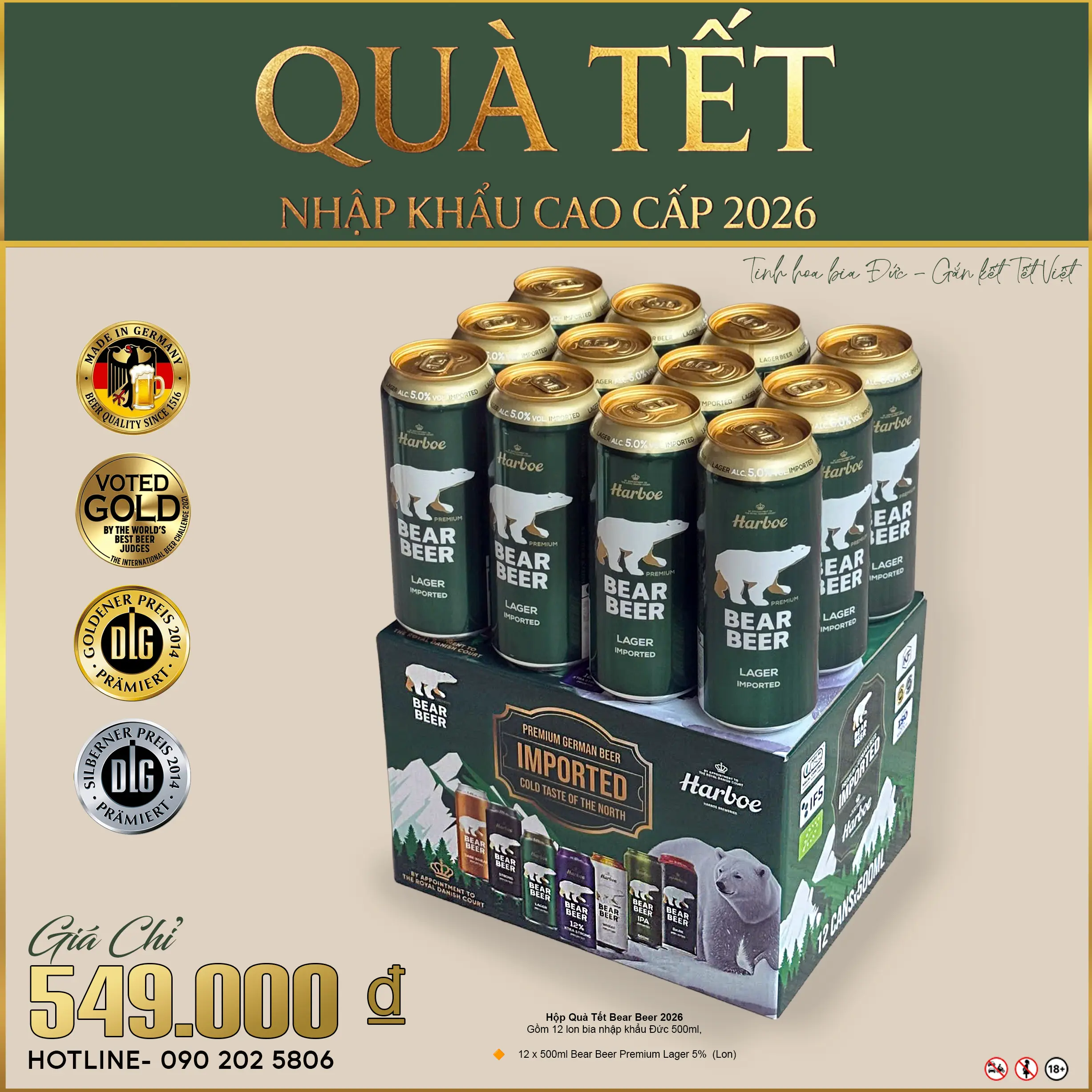 Tết thêm trọn vị với Hộp Quà Harboe Bear Beer Nhập Khẩu Cao Cấp – bộ sưu tập bia Đức, được tuyển chọn kỹ lưỡng và đóng gói trong hộp quà màu tím sang trọng, mạnh mẽ, lấy cảm hứng từ vùng Bắc Âu lạnh giá.