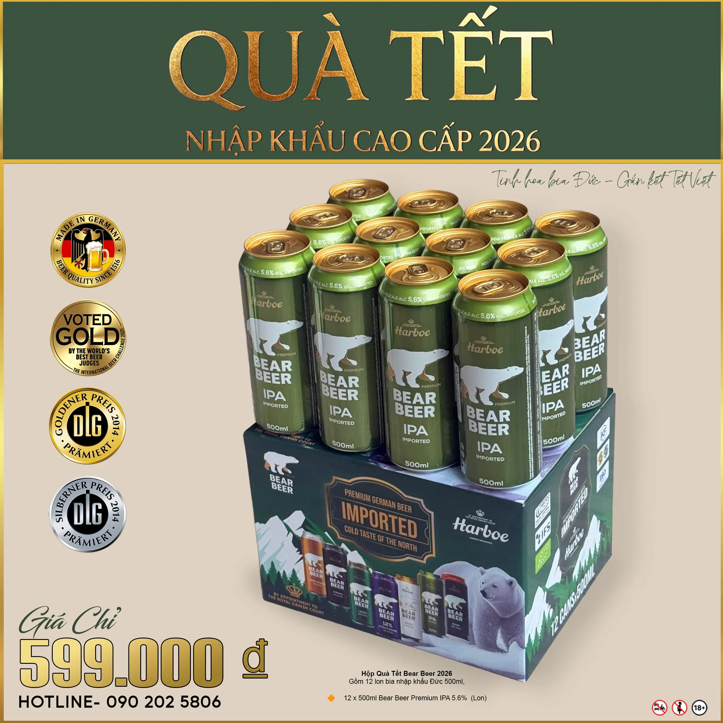 Toàn bộ bia trong hộp đều được sản xuất tại Đức theo tiêu chuẩn châu Âu nghiêm ngặt, nhập khẩu nguyên lon, mang đến trải nghiệm bia chuẩn vị, đậm đà và khác biệt – rất phù hợp làm quà Tết, quà biếu đối tác hoặc thưởng thức cùng gia đình, bạn bè.